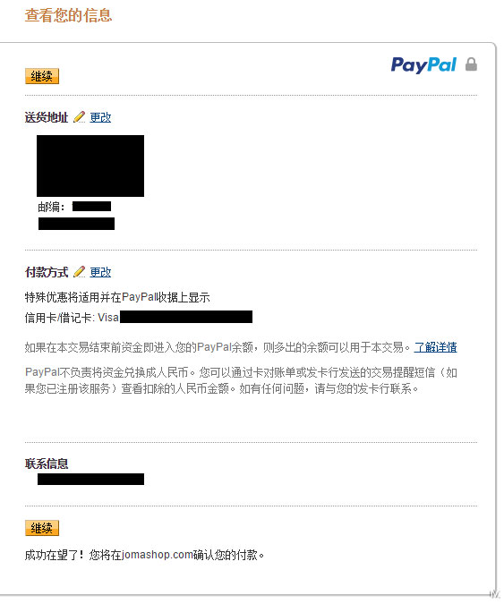 以上就是在Paypal完整注册并在商城购物的流程,目前PayPal支持的海外商家为数不少,其安全性保障及中文客服也是优势之一,更重要的是可以解决一些商城不支持国卡的问题。