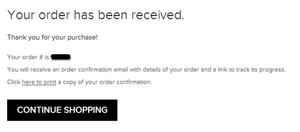 之后会看到订单确认信息,这样在Jomashop的购物就算成功了。