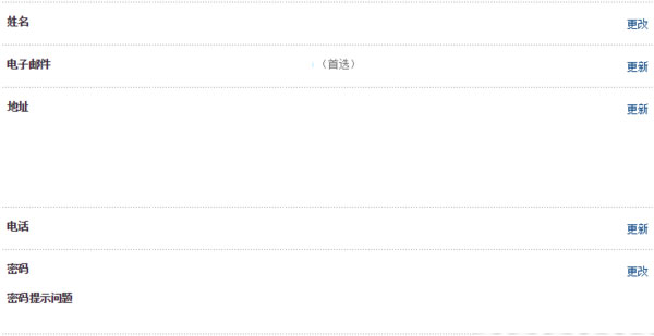 在这里我们姓名、邮件地址、地址、电话、密码等都可以点击右侧的更新来进行修改。