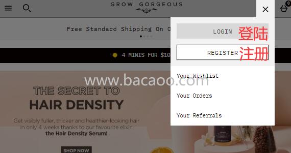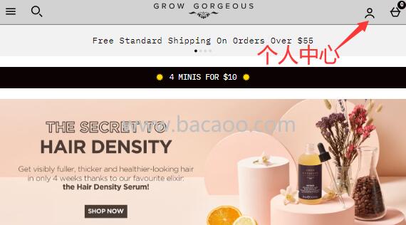 通过以上链接防伪Grow Gorgeous美国官网,注册并登录账号,避免游客身份下单。首先点击网站右上角个人中心,可以看到Grow Gorgeous美国官网账号登录和注册入口,如下图所示: