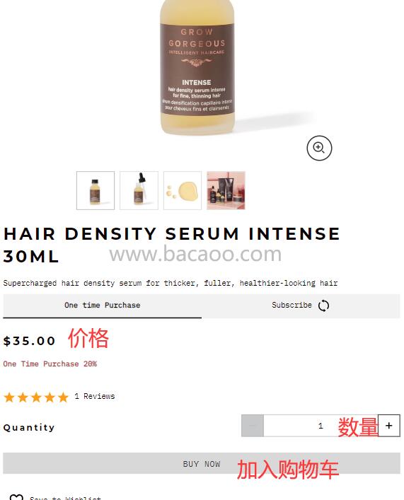 在Grow Gorgeous美国官网选购喜欢需要的护发产品并加入购物车,商品加购页面如下图所示: