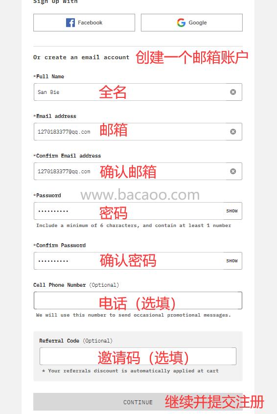 点击注册,需要填写姓名、注册邮箱、设置密码,最后点击继续,提交注册,如下图所示: