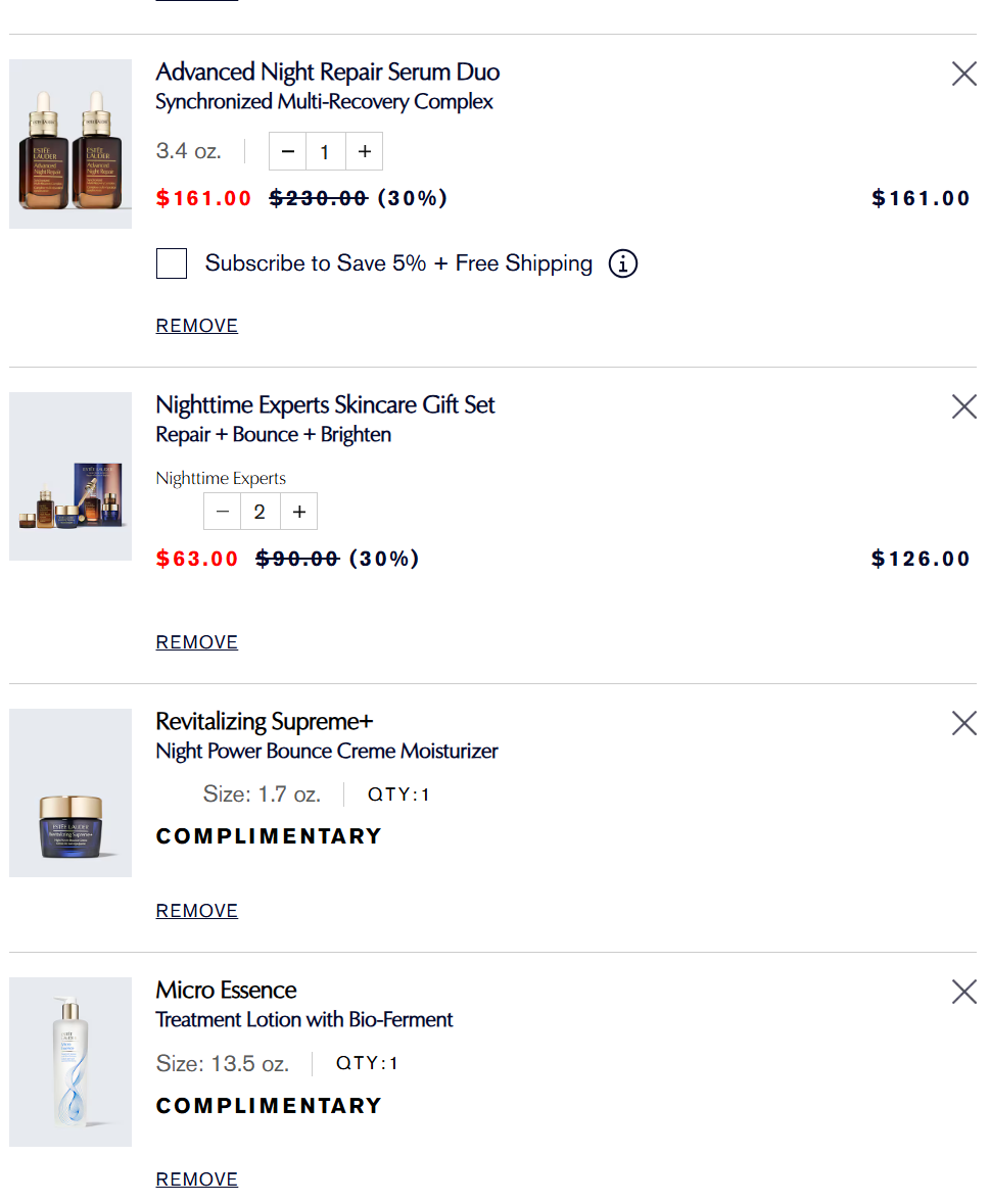 0、由于雅诗兰黛购物车系统升级,赠品数量可能不显示,请看购物车总数量(shopping bag)