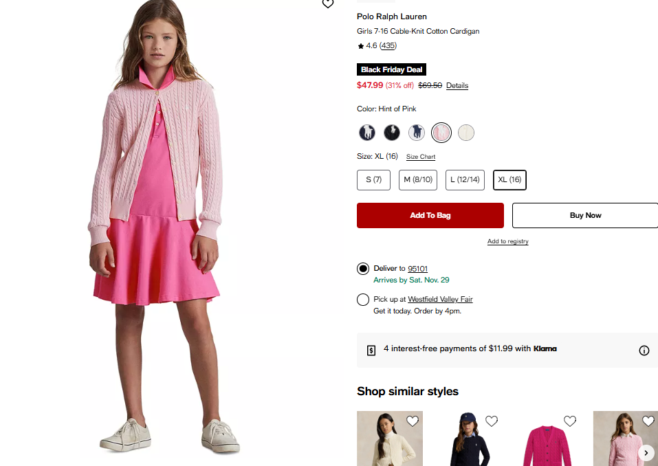 友情提示: "PRL大童款小马标绞花开衫额外7折优惠"商品及优惠信息($198 ➡ $47)来自合作商家,具有时效性和地域性, "黑五&网一 " 折扣信息及商品价格会随时变化,请各位网友购买时注意核实,以商家实时信息及商品价格为准,本站不承担任何形式的责任。