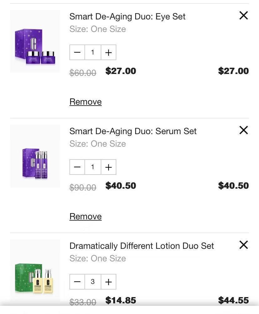 此外还有眼霜和精华同样给出了惊人的优惠,两瓶装分别只需$27和$40。