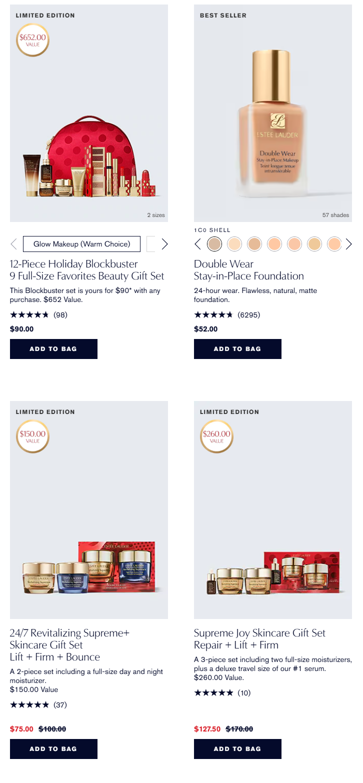 - Estee Lauder 现有 全场护肤7.5折