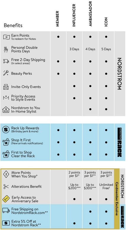 Nordstrom Nordy Club会员等级: